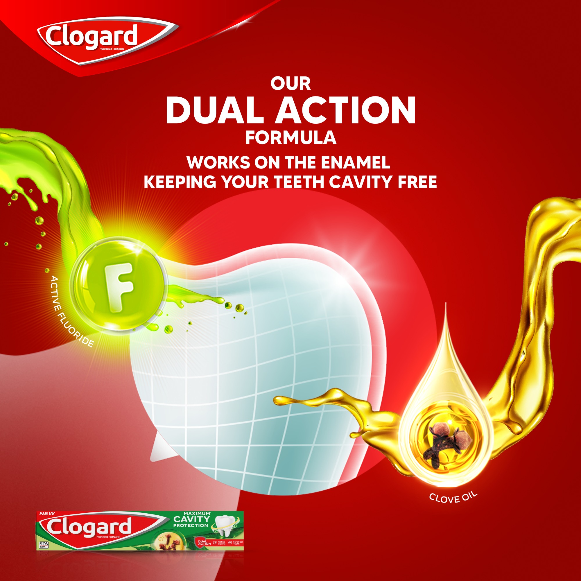 Maximum* protection against cavities with Dual Action, through pure Sri Lankan natural Clove oil formula that fights germs and Fluoride actives which help restore the enamel for stronger teeth.